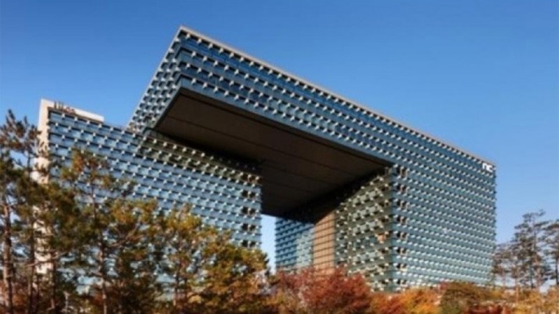 엔씨소프트 본사 앞에 시위트럭이 잠시 정차해 있다.